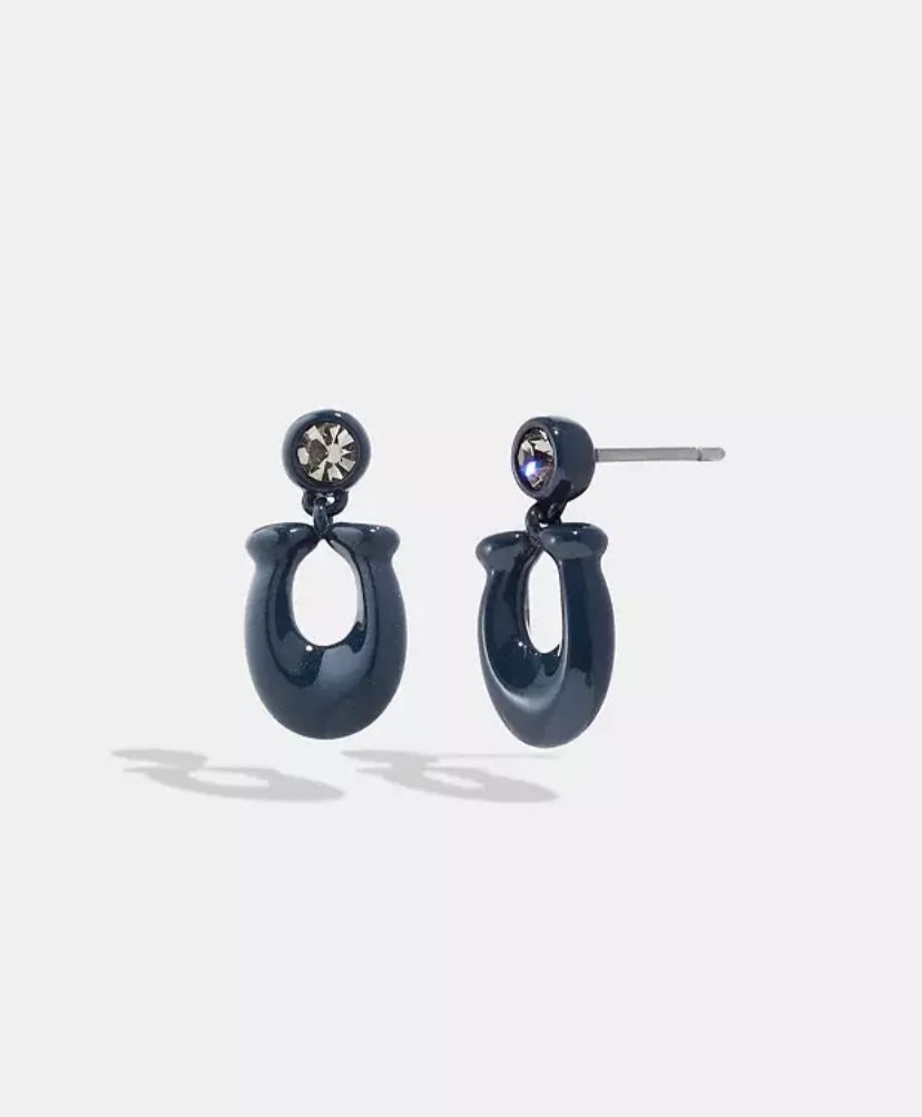 Add a vibrant pop of color to your look with these striking navy enamel earrings. Designed in Coach’s iconic signature style, each piece is accented with a brilliant crystal stud for a refined touch of sparkle.