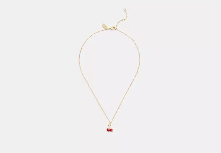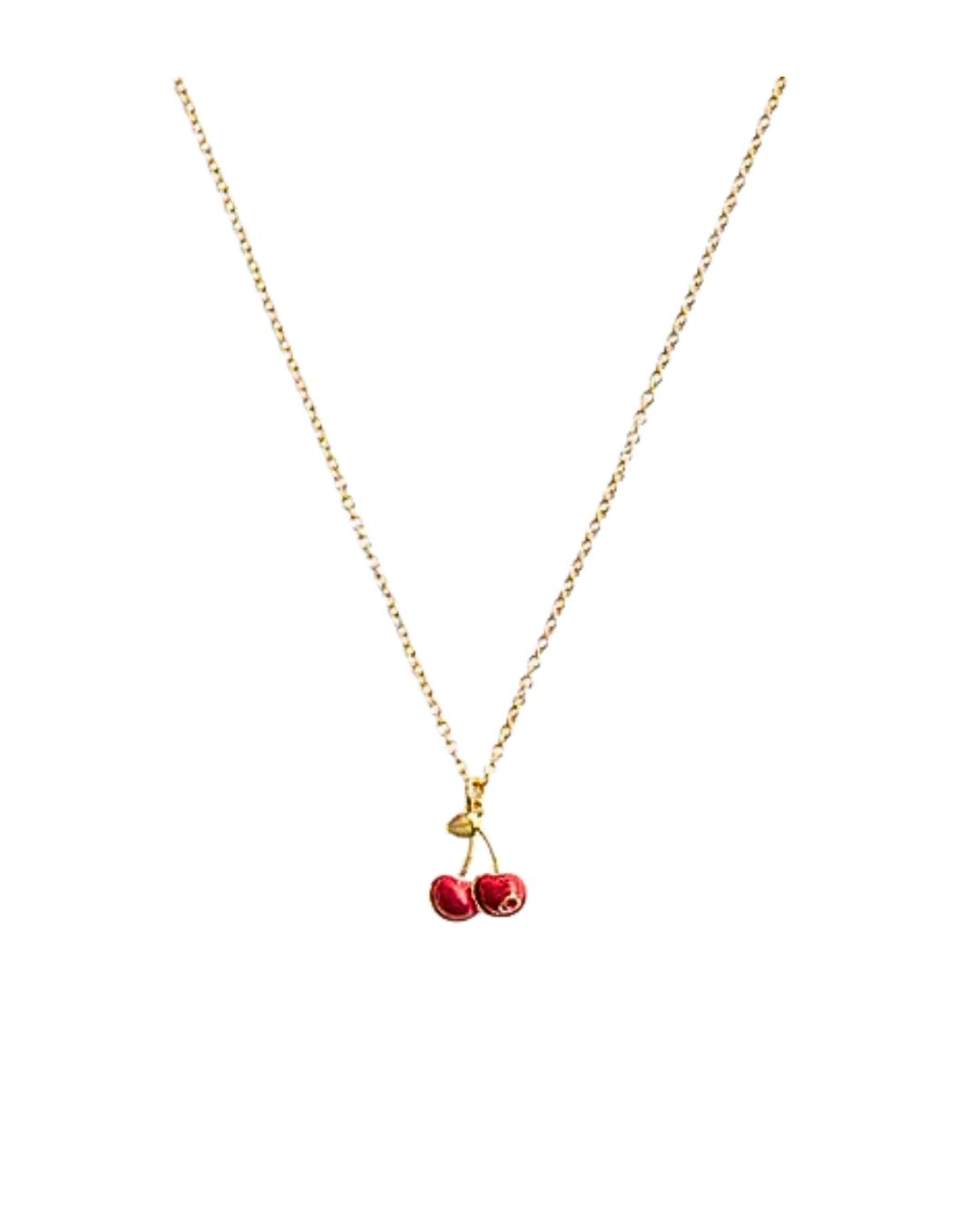 Sweet with a hint of playful charm, this cherry pendant necklace adds a fresh pop of color to your jewelry collection. Featuring a delicate gold-tone chain and a glossy red double-cherry charm with subtle leaf detail, this piece brings a fun yet feminine touch to any look. Lightweight and easy to style, it’s perfect for everyday wear or layering with other necklaces for a trendy stacked effect. A charming accessory that instantly brightens your outfit.
