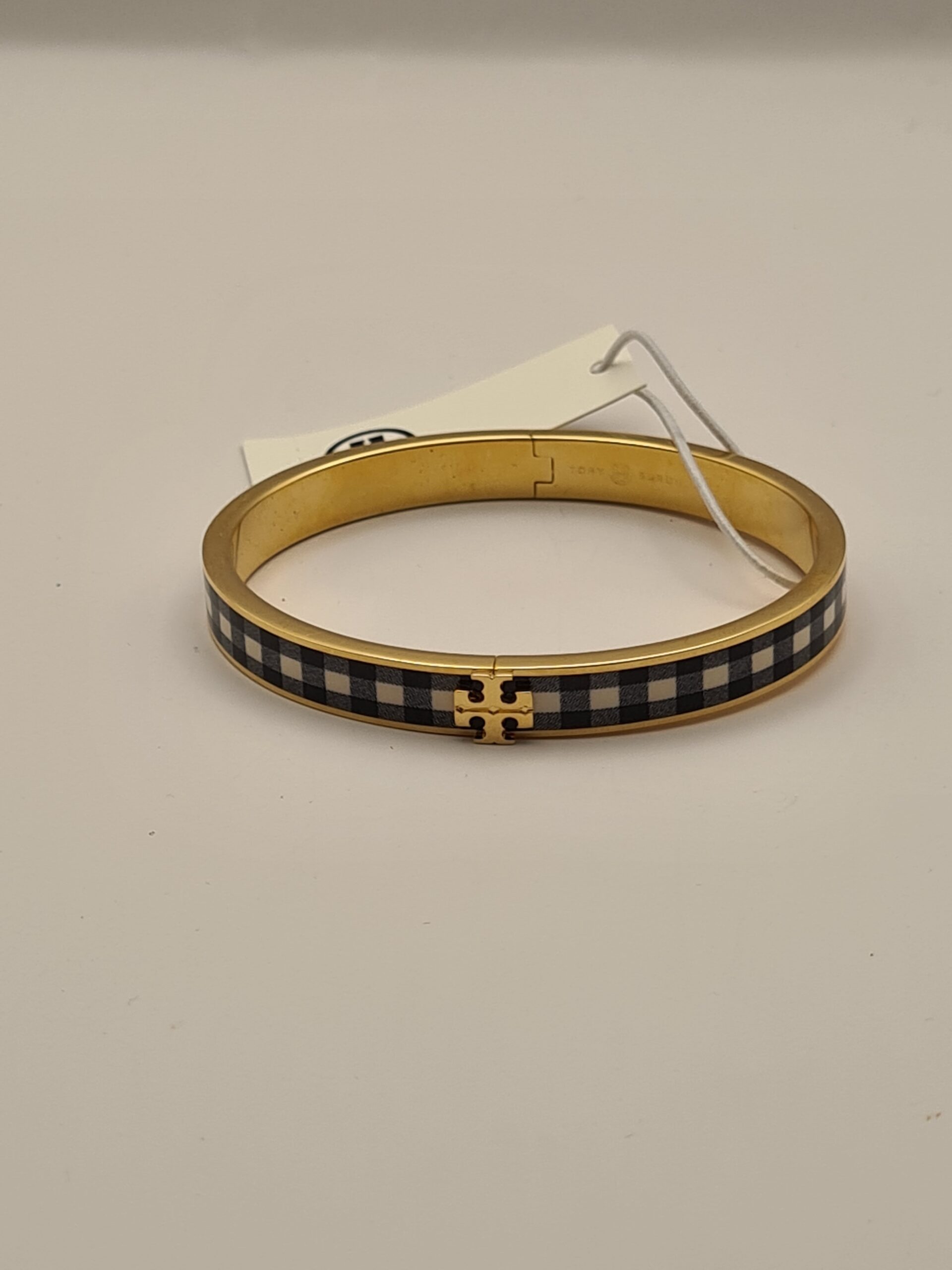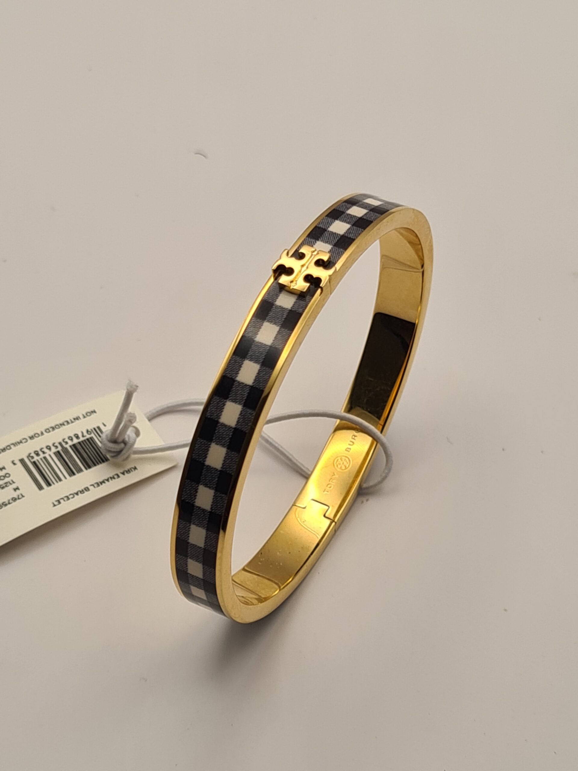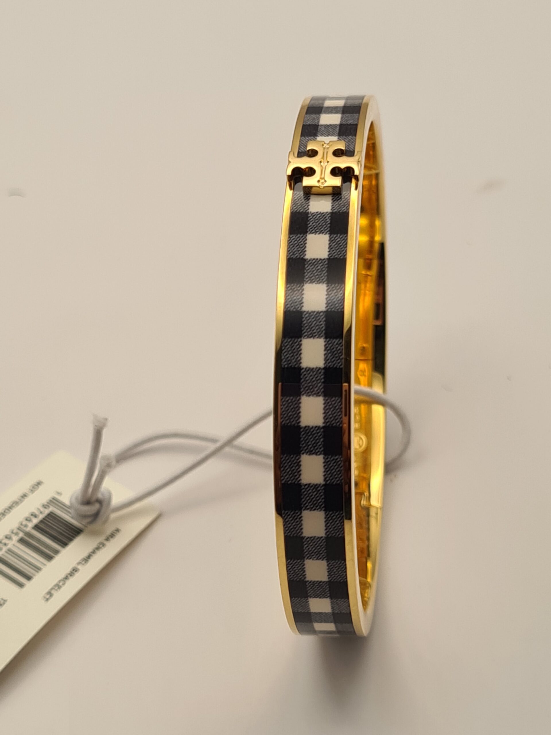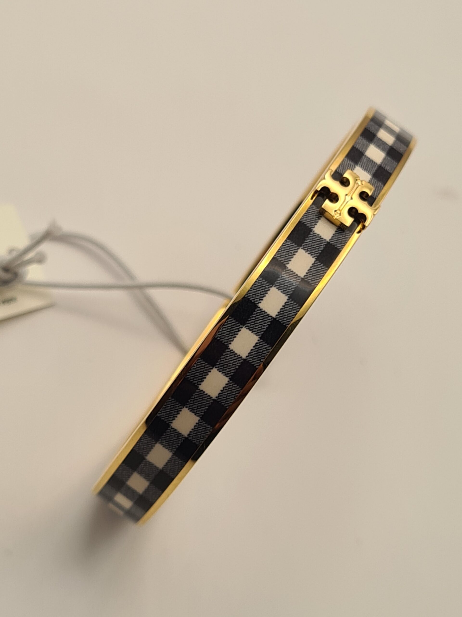 Playful yet polished, the Kira Gingham Print Bangle brings a touch of charm to your wrist. Featuring a classic gingham pattern on a smooth enamel finish, this bangle balances fun and sophistication, making it perfect for both casual and chic ensembles.