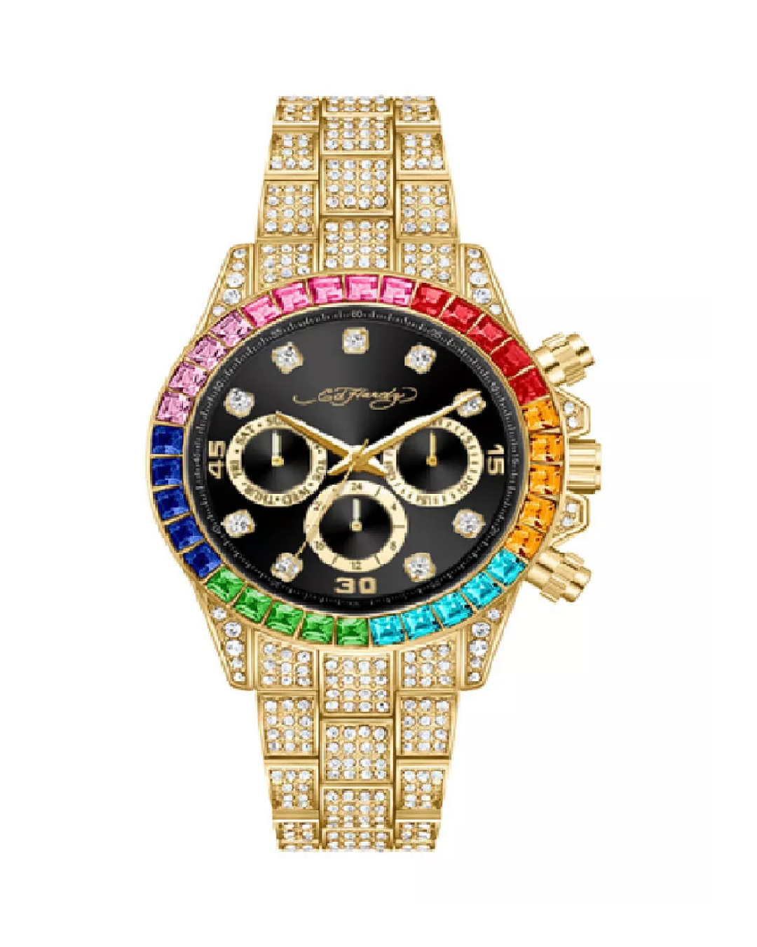 Embrace the epitome of glamour and sophistication with the Ed Hardy ladies analog watch, a masterpiece that transcends timekeeping to become a wearable work of art. This exquisite timepiece features a captivating multi-color crystal stone bezel, adding a touch of vibrant elegance to every glance. The pave crystal stone bracelet further elevates the watch’s allure, creating a dazzling and luxurious accessory that seamlessly merges fashion and function. The intricate dial is a masterpiece in itself, boasting a trio of functional elements – date, day, and a 24-hour clock, ensuring both practicality and style. The harmonious fusion of these features not only enhances timekeeping precision but also adds a layer of versatility to this Ed Hardy creation. The meticulous craftsmanship is evident in every detail, from the precision of the date and day indicators to the sparkle of the crystal-studded bracelet. Whether it’s a formal event or a casual outing, this watch effortlessly transitions, becoming a symbol of refined taste and individuality. Emblazoned with Ed Hardy’s signature flair, this ladies analog watch is a testament to the brand’s commitment to innovative design and unparalleled elegance. Make a bold and confident statement with every wrist adorned with this timepiece, a celebration of artistic expression and timeless beauty.