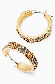 Radiate sophistication with the Tory Burch Crystal-Embellished Gold Hoop Earrings, a refined twist on a timeless classic. Crafted in polished gold-tone metal, these medium hoops are encrusted with sparkling crystals that catch the light beautifully. The design is elevated with Tory Burch’s iconic double-T logo medallions, adding a signature touch of elegance.