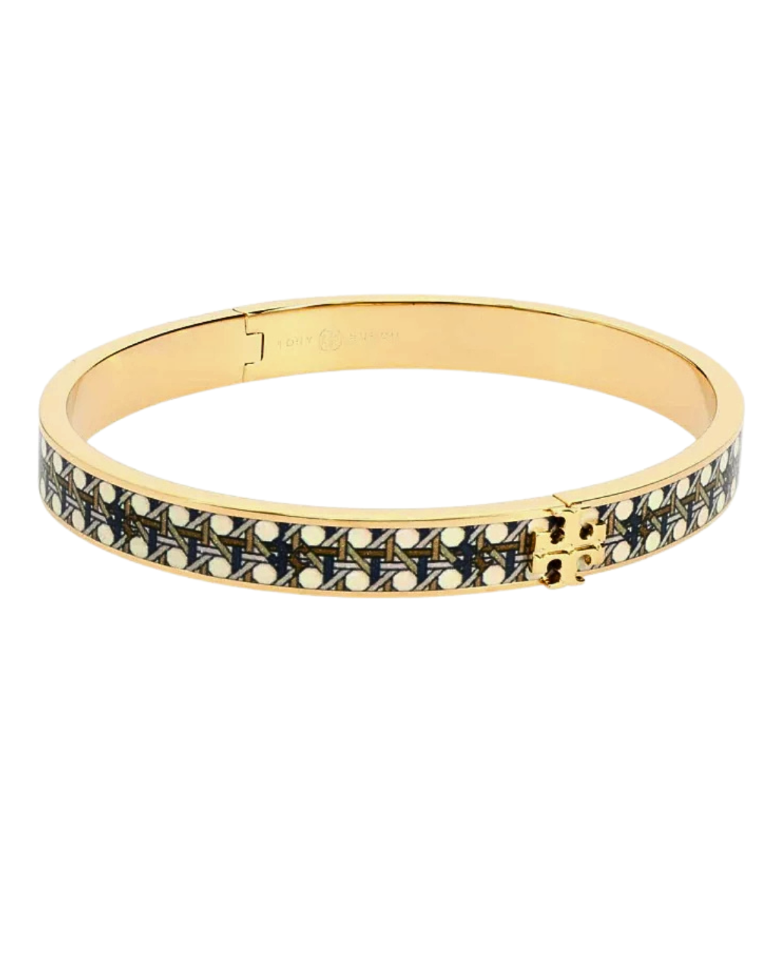 Clean lines, polished shine, and a touch of signature charm — this two-tone enamel bangle is the definition of effortless elegance. Designed with a sleek enamel center framed by a radiant gold-tone finish, it delivers a refined contrast that feels both modern and timeless.